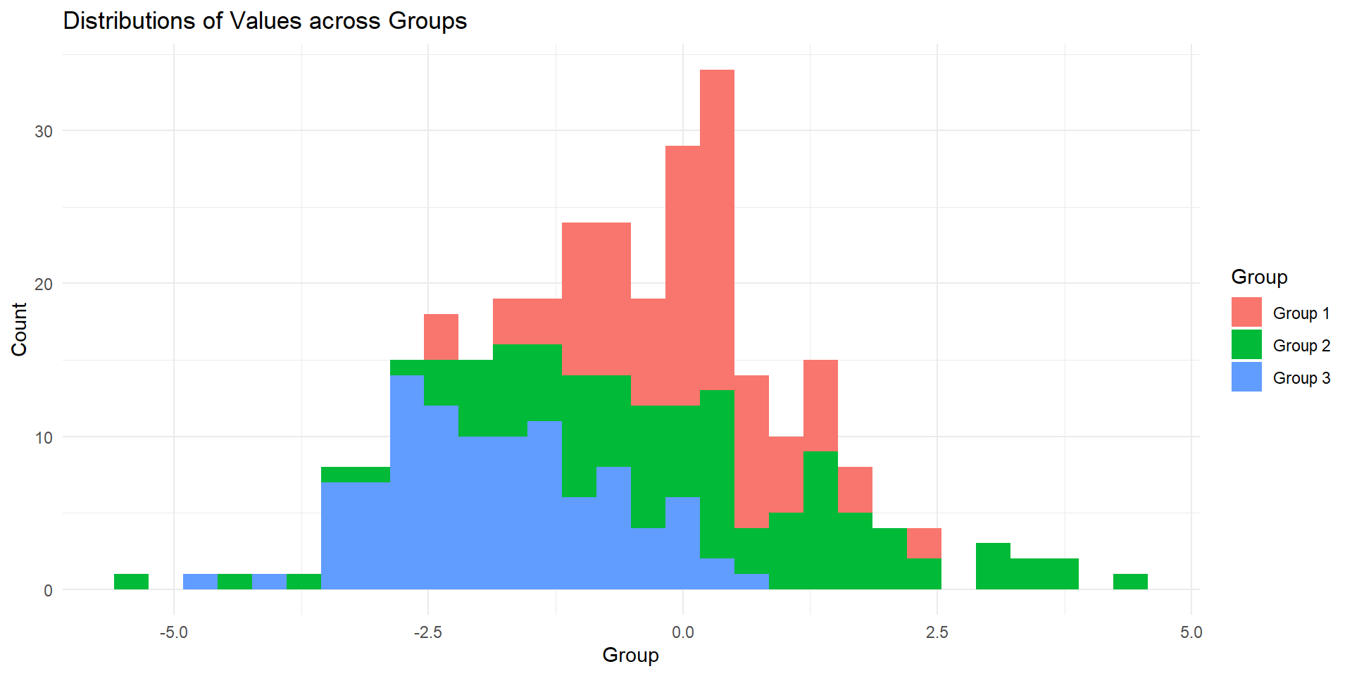 data3 <- rnorm(100, mean = -2, sd = 1) # Distribution 3: Mean -2, SD 1